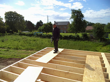 Construction d'une maison en ossature bois. Réalisation de A à Z! Terrassement, construction, assemblage, toiture, châssis, isolation, chapes, électricité, chauffage.